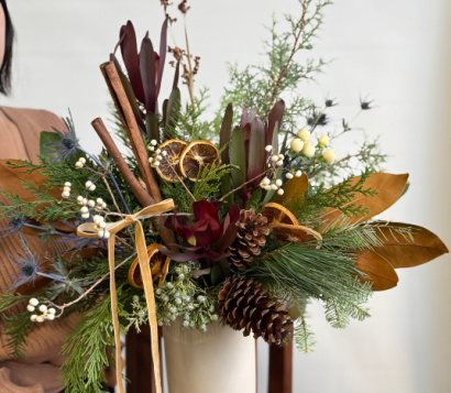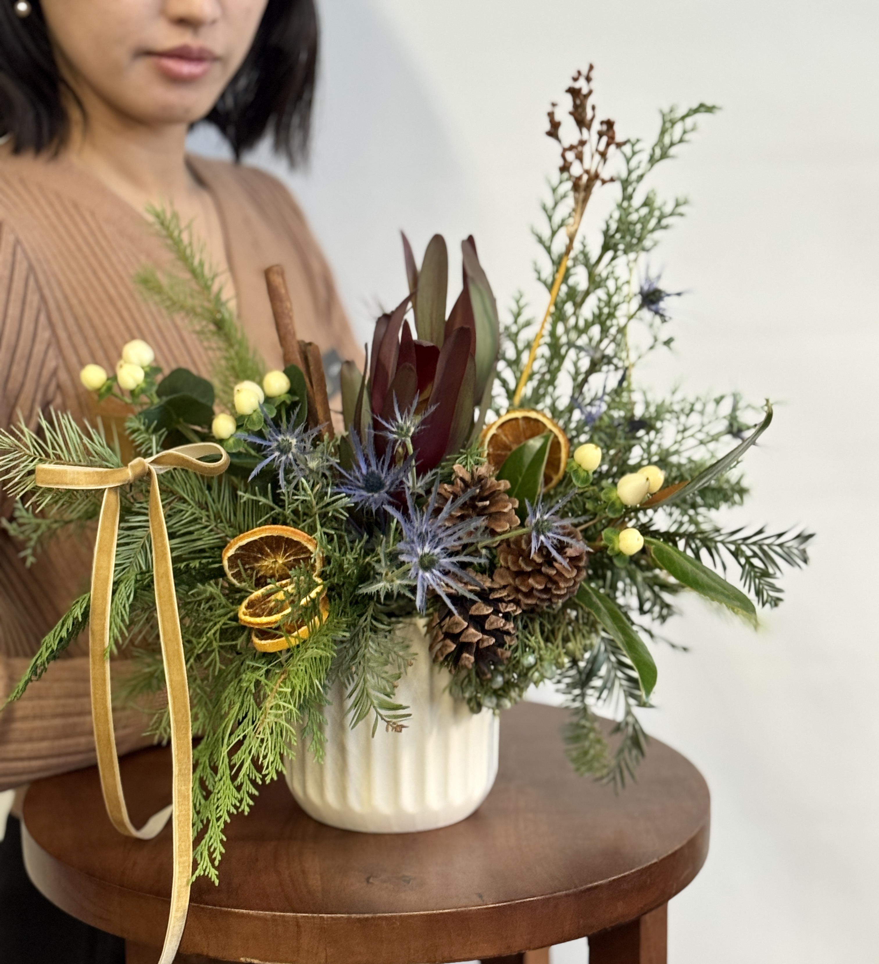 WINTER SOLSTICE An ode to December’s wild stillness—pine, fir, magnolia, orange slices, and cinnamon sticks woven into an organic winter gathering